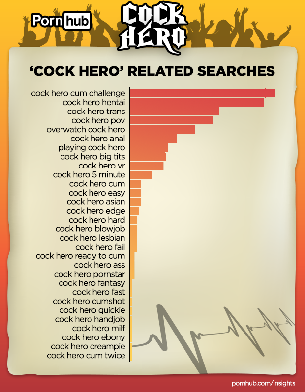 Men are more than twice as likely (+102%) to search for “cock hero” videos when compared to women. As a testament to how many people take the challenge seriously, the top “cock hero” videos are typically watched for twice as long (+94%) when compared to the viewing times of other popular Pornhub videos. Even if people don’t make it to the end, they seem to keep up the beat(ing) for longer.