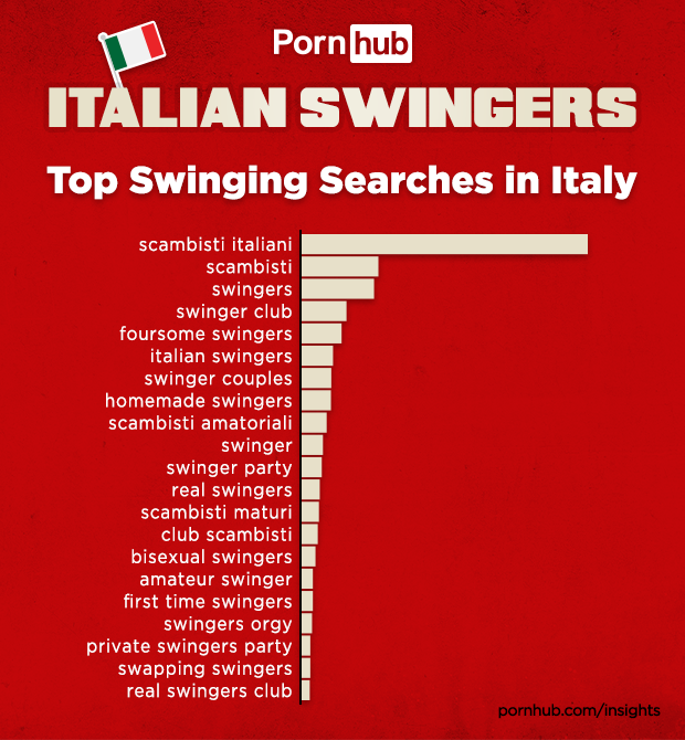 Let’s start off with the fact that “Scambisti Italiani” (Italian Swinger) is the 163rd most popular term in Italy, and as the top swinging related search, shows that Italians are very much interested in seeing more of their fellow countrymen. Next up we find the word “scambisti”, and then the English translation of “swingers”. The popularity of swinger searches have remained fairly consistent in Italy over the last several years, with visitors from the Toscany region being more likely to search than any other part of Italy.