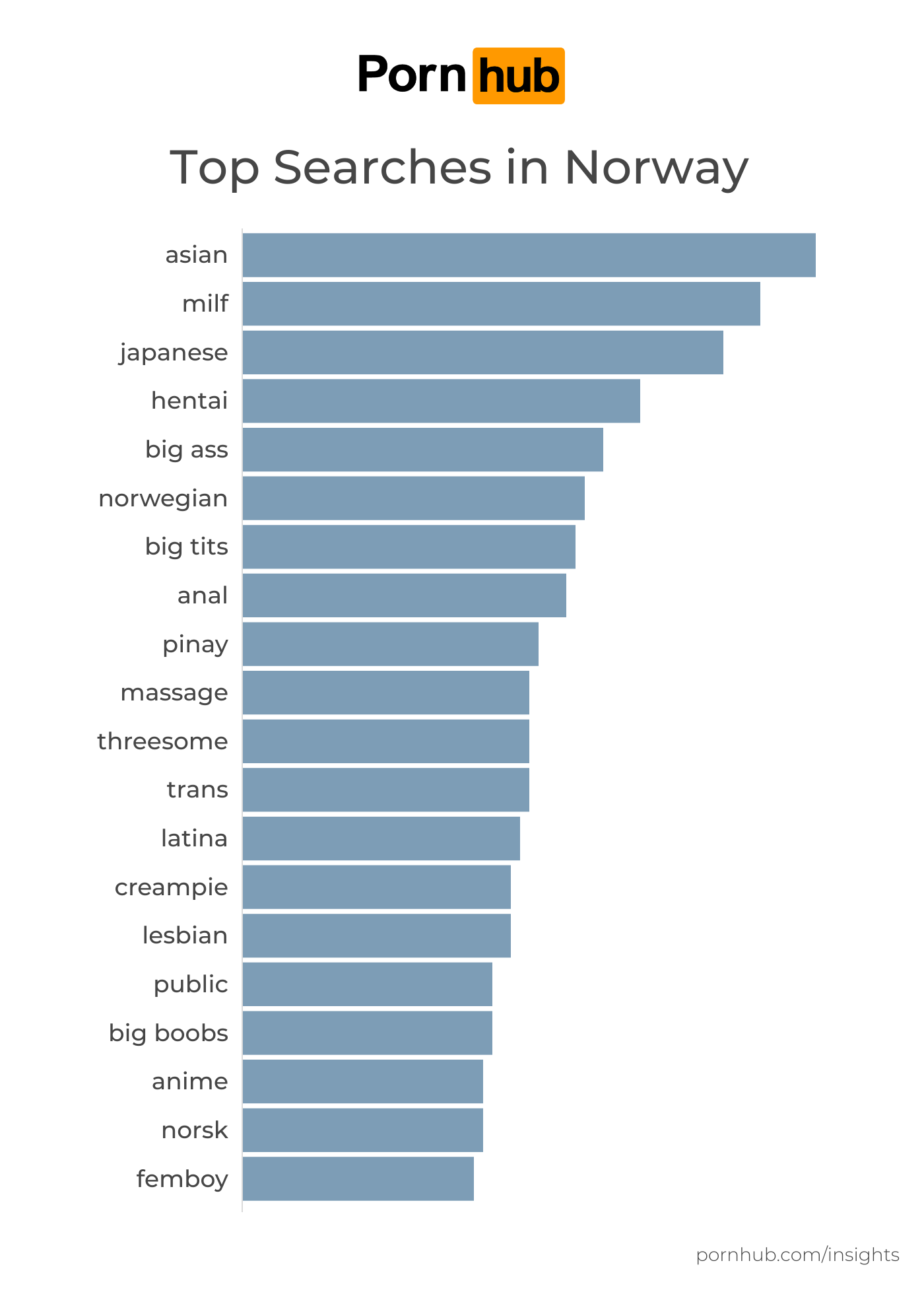 “asian,” “milf” and “japanese” are Norway’s top searches, aligning with the global popularity of these search terms and categories.
