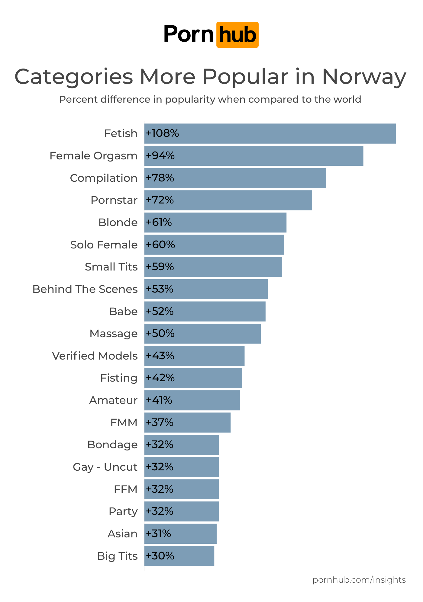 Compared to other countries, the Fetish category was +108% more popular. The Female Orgasm category was +94%, and Compilation +78%.