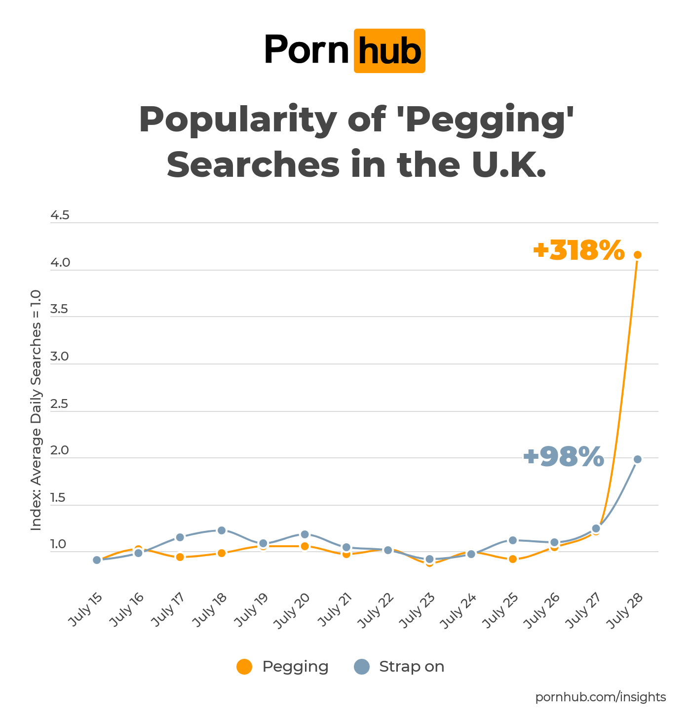 On July 28th, this curiosity caused searches for “pegging” to grow by +318% in the U.K., along with a +98% increase in searches for “strap on”.
