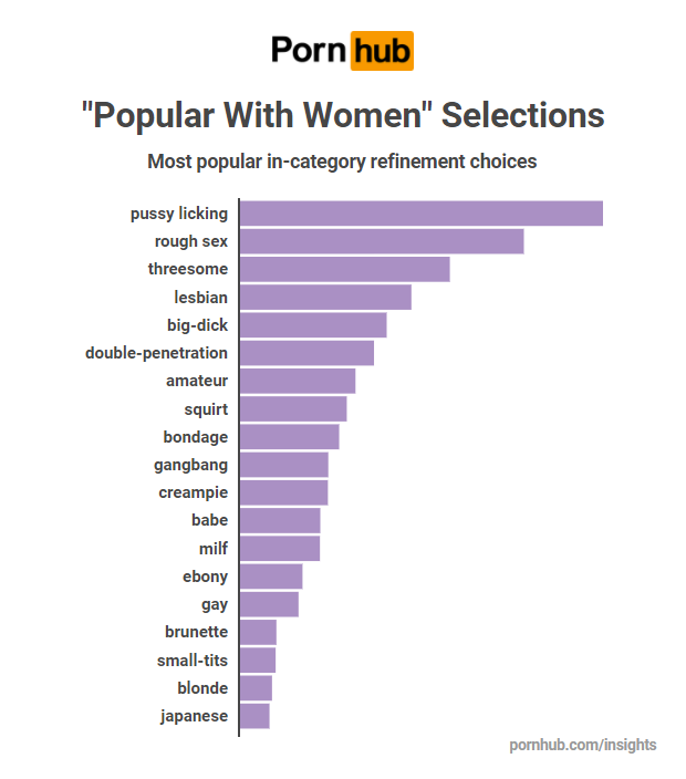 As the number of women enjoying adult content increases – according to Pornhub’s 2017 Year in Review, “Porn for Women” was a top trending search throughout the year, increasing by over 1,400 percent. On December 8th, Pornhub launched a new “Popular With Women” category which automatically aggregates content catered to the growing demographics’ specific interests, taking into account women’s views and preferences.